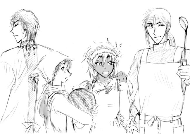 | 吏兎「待ってて!いま持ってくからっ!おかわりもたっぷりあるよっ♪」 晶「ふぅ〜ん、美味そうじゃん」 北冬「……」 シアン「ハイv マドモアゼル遙、試食をどうぞ☆」 遙「まぁ、私が戴いていいの?嬉しいわ」 暁龍「…!!!!いけませんっ!!こんなものを召し上がっては…絶対にいけません!!」 |