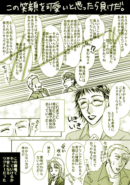拍手御礼として公開していたラクガキ漫画です。4枚一括表示。 もうちょい追加したかったがひとまず打ち止め また気が向いたら追加するかも…? アリシアさんの腐女子っぷりが炸裂するラクガキ漫画となりました(笑) 本編にはこんな一面は今のところ出ていないのに、企画モノではちょいちょい本性が出てますね(笑)